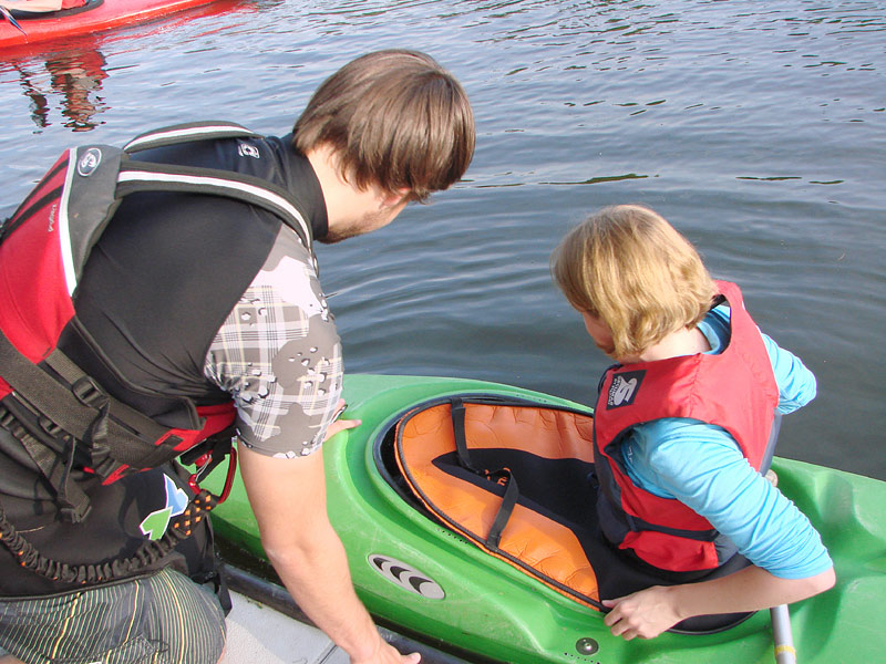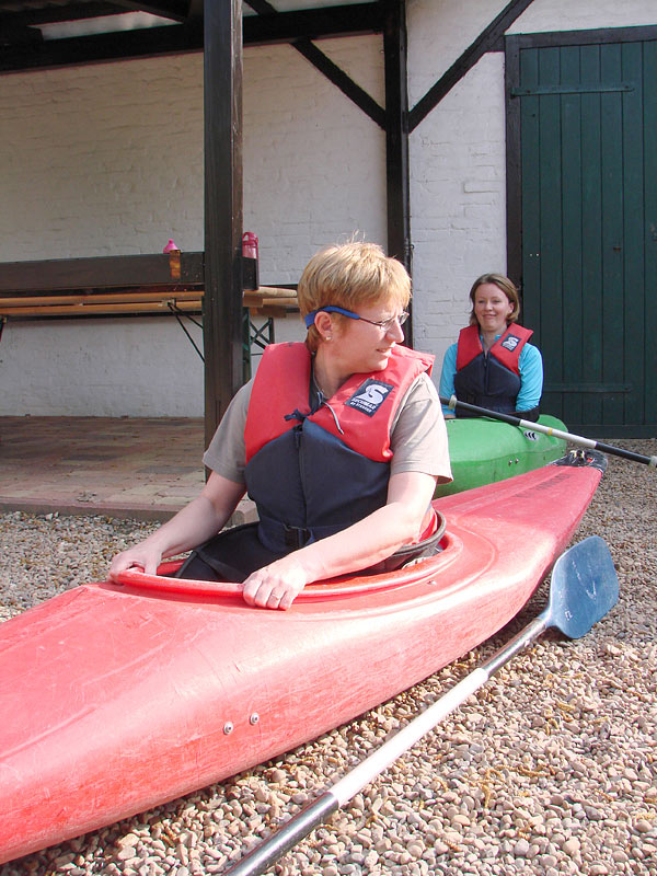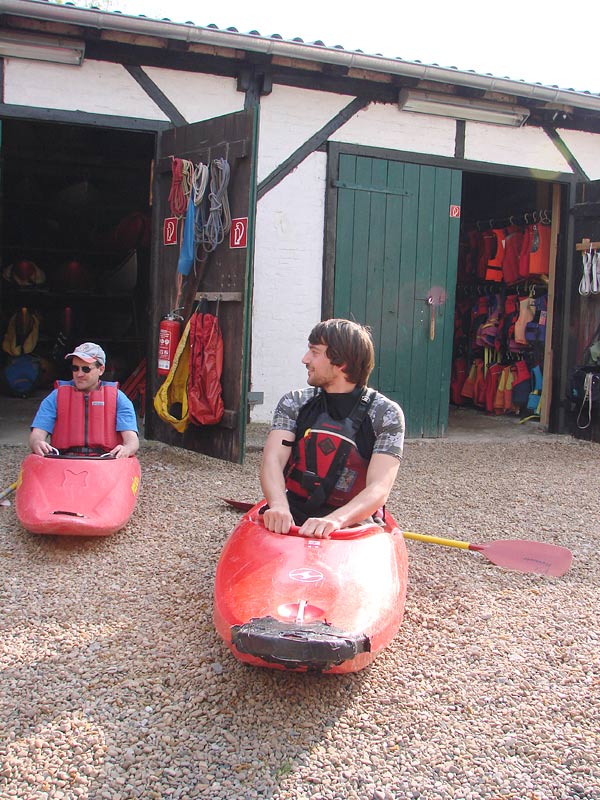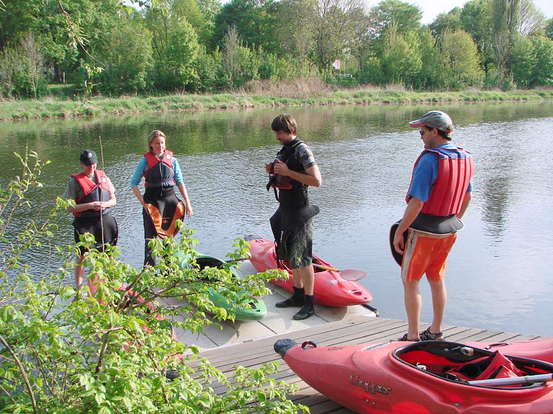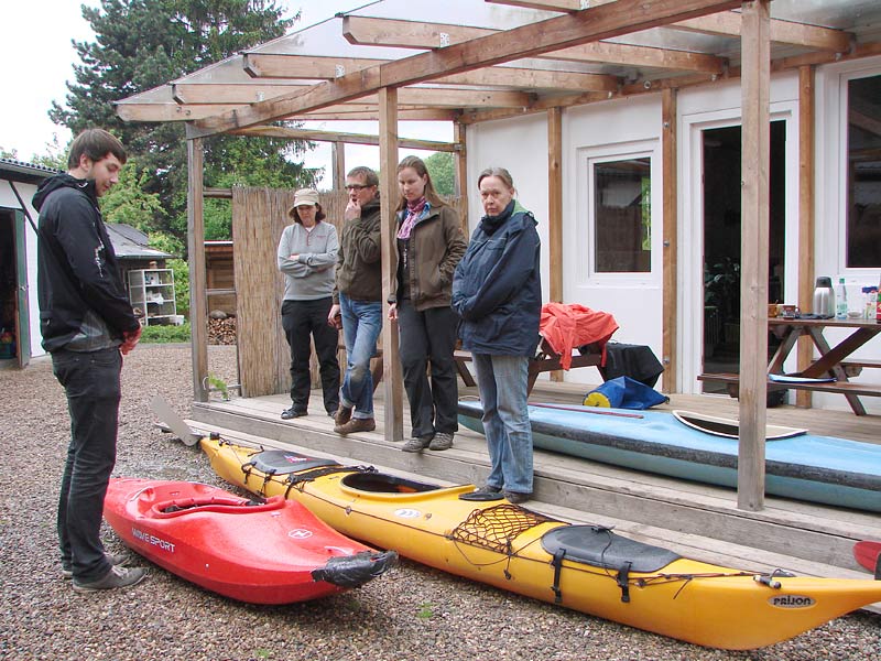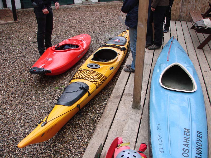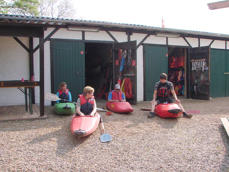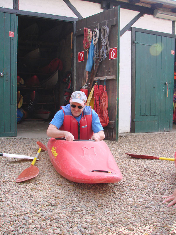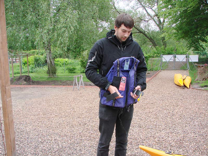 Auch dieses Training, oder nennen wir es diesmal lieber Theorie, erfolgte durch die sachkundige Unterweisung von Falk. Hierbei ging es um das Thema: "Was gehört alles zu einer anständigen Paddelausrüstung" und wie wird was wann eingesetzt. Mithin Informationen, die einem geübten Paddler selbstverständlich erscheinen, doch für Anfänger das "Einmaleins" bedeuten.