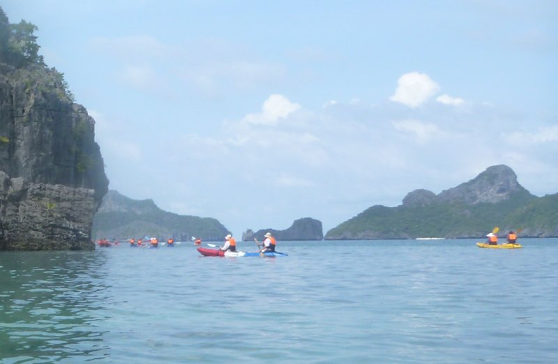 Dann haben wir einen Tagesausflug inklusive Kayaking in den Ang Thong Marine Nationalpark unternommen. Der Nationalpark besteht aus einem Archipel von vielen kleinen Inseln, die etwa 40 Kilometer von Koh Phangan entfernt liegen. Da kann man also nicht so einfach mal hinpaddeln. Wir haben deswegen auch die Variante mit Speedboot gewählt. Man kann dort übrigens auch anderem Wassersport frönen.